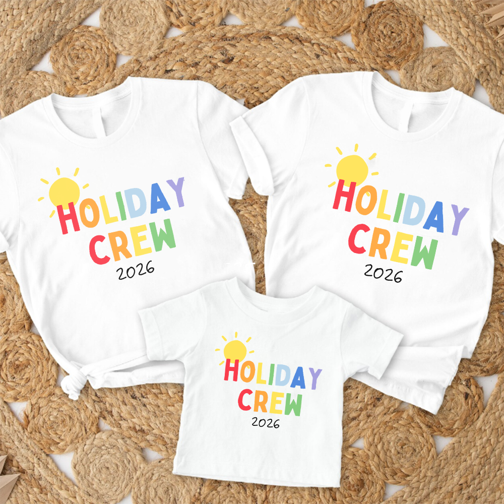 The ultimate family holiday tops are here! Featuring 'Holiday Crew 2026' slogans, these tops are perfect for travel day and available in all kid and adult size options.
