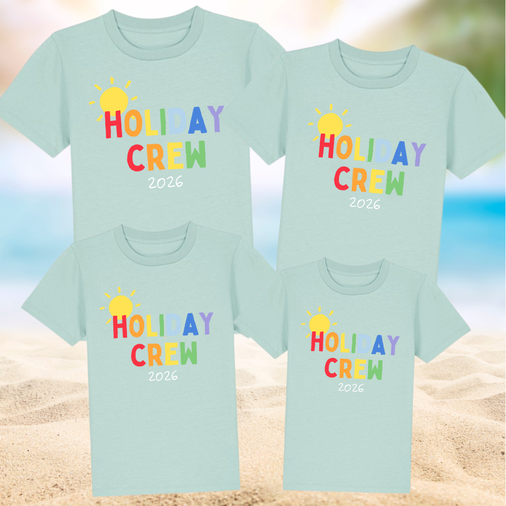 The ultimate family holiday tops are here! Featuring 'Holiday Crew 2026' slogans, these tops are perfect for travel day and available in all kid and adult size options.