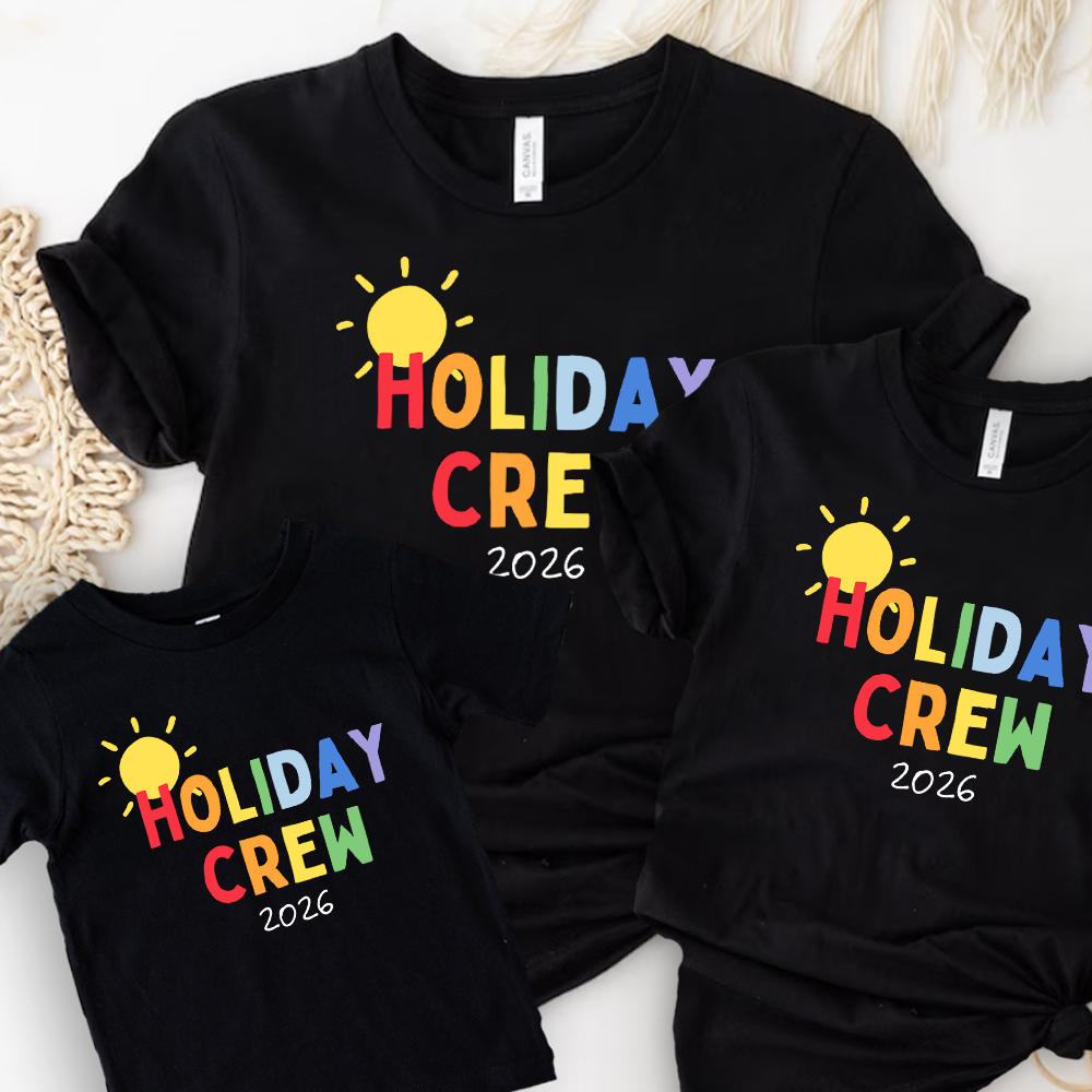 The ultimate family holiday tops are here! Featuring 'Holiday Crew 2026' slogans, these tops are perfect for travel day and available in all kid and adult size options.