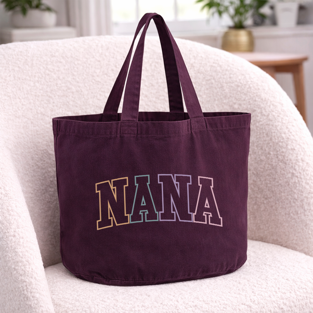 The ultimate Nana tote for all the cool mums. The relaxed washed bag is perfect for holding all your Nana essentials but how said it needed to be boring, it's cute & stylish for the perfect added pop to your outfit. With its stone-washed finish and spacious, oversized oval design, it’s ideal for carrying everyday essentials. The range of washed timeless shades and soft pastels make it a versatile go-to for any occasion. Due to the intricate garment-dyeing, each colour is beautifully unique.