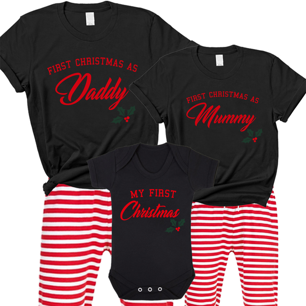 Sleigh your first festive season as Mummy, Daddy & Baby in style! Add each style into cart individually. Adult sets include t-shirt & cotton flannel pyjama bottoms, & baby version is a 100% cotton bodysuit.