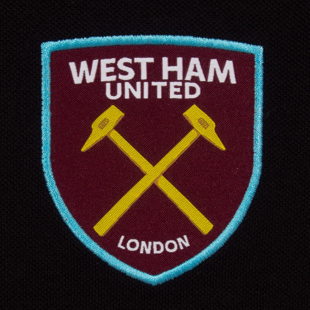 • This classic West Ham men's polo shirt is an essential for any West Ham fan. In a selection of colourways, this regular-fit T-shirt is made from a cotton and polyester blend for a lightweight and comfortable feel. The top features short sleeves, three branded buttons, and a pointed collar for a classic look. The polo shirt is finished with a woven WHUFC badge and embroidered irons to either side of the chest. Machine washable.