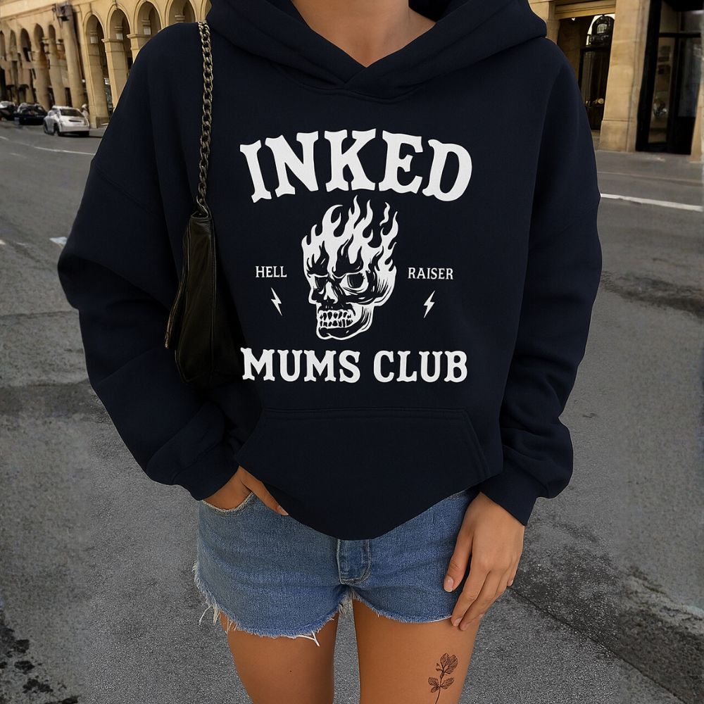 The Inked Mums Club Hoodie is the ultimate statement piece for tattooed mums who own their style. Designed for cool comfort and perfect for autumn, this hoodie delivers a bold, oversized look—just order one size up for that relaxed, effortlessly daring vibe. Stay warm, be unapologetically you.