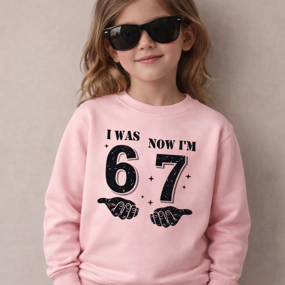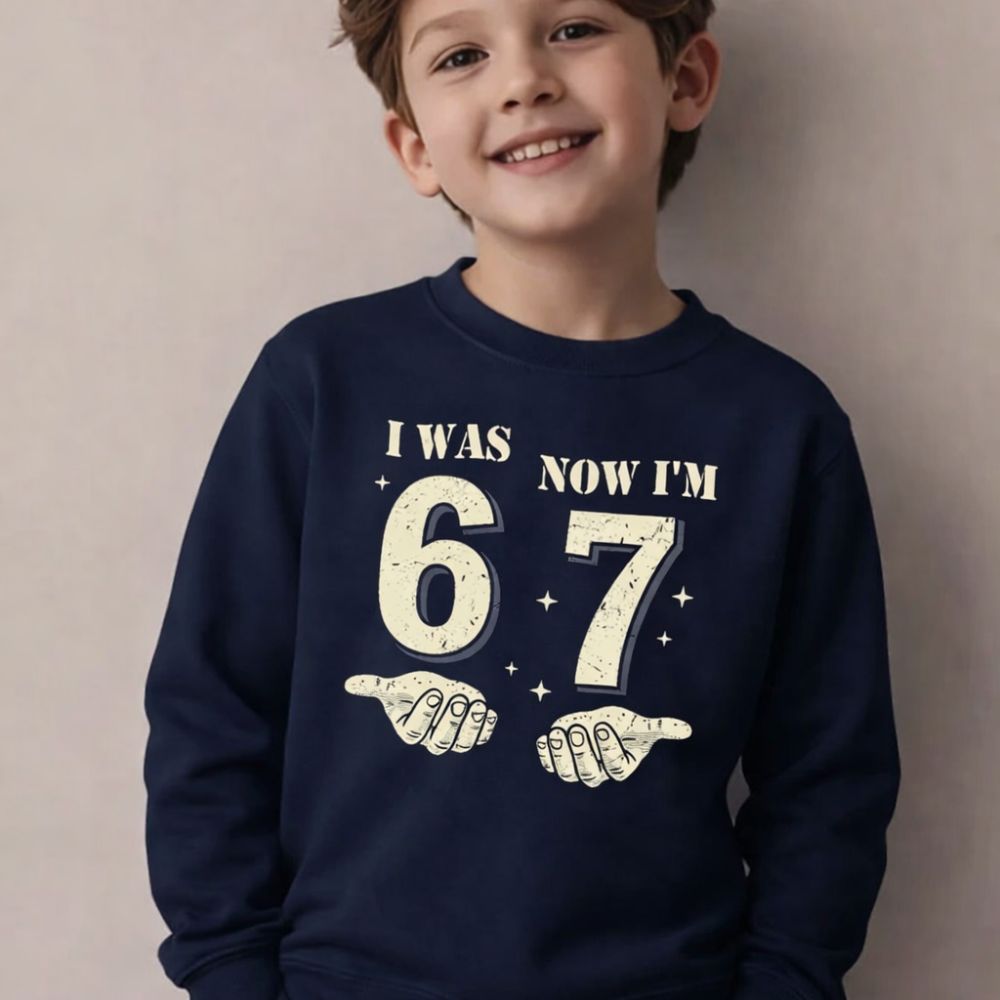 Celebrate turning seven in style with this trendy birthday sweatshirt inspired by cool "67" slang. Featuring a fun hands graphic design, it's the ultimate party fit for kids who want to look effortlessly cool on their special day. Soft, comfortable, and packed with personality, this sweatshirt makes the perfect birthday outfit or gift for the birthday kid who's got serious style credentials.