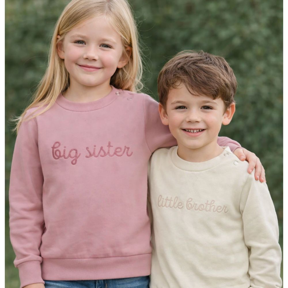 Introducing the cutest neutral matching sibling sweatshirts. The perfect addition to your little ones autumn/ winter wardrobe. From Baby to Kids sizes, it's a great as an extra layer for any big or little sister or brother.