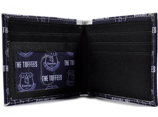 - Vibrant brushed canvas bifold wallet featuring an Eveton THe Toffees multi icon design