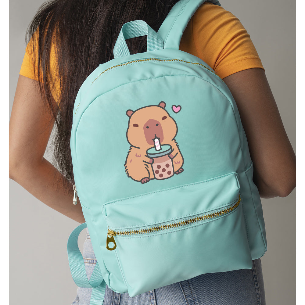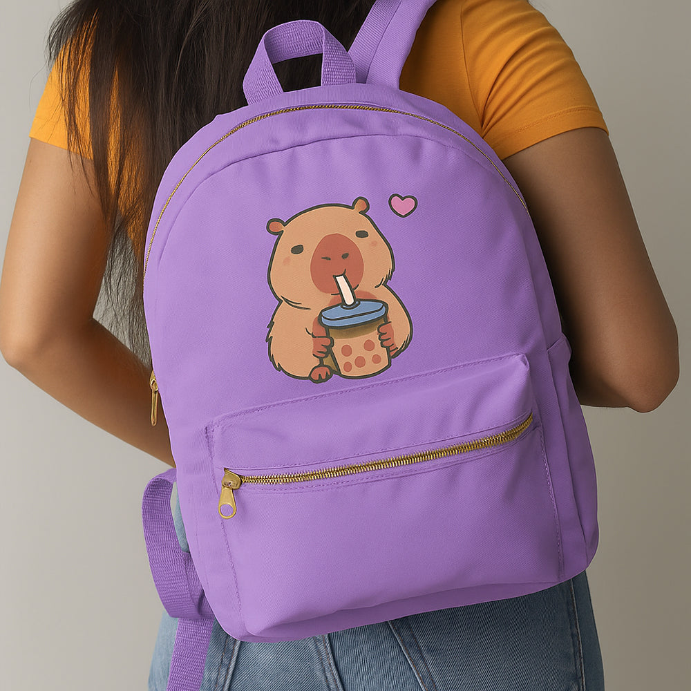Stand out boldly with the Boba Capybara Sundae Backpack—a playful blend of trendsetting style and adorable charm. Featuring a viral capybara logo that's as cute as it is eye-catching, this backpack is perfect for those who dare to be different while staying effortlessly cool. Compact yet functional, it carries your essentials with flair and personality.