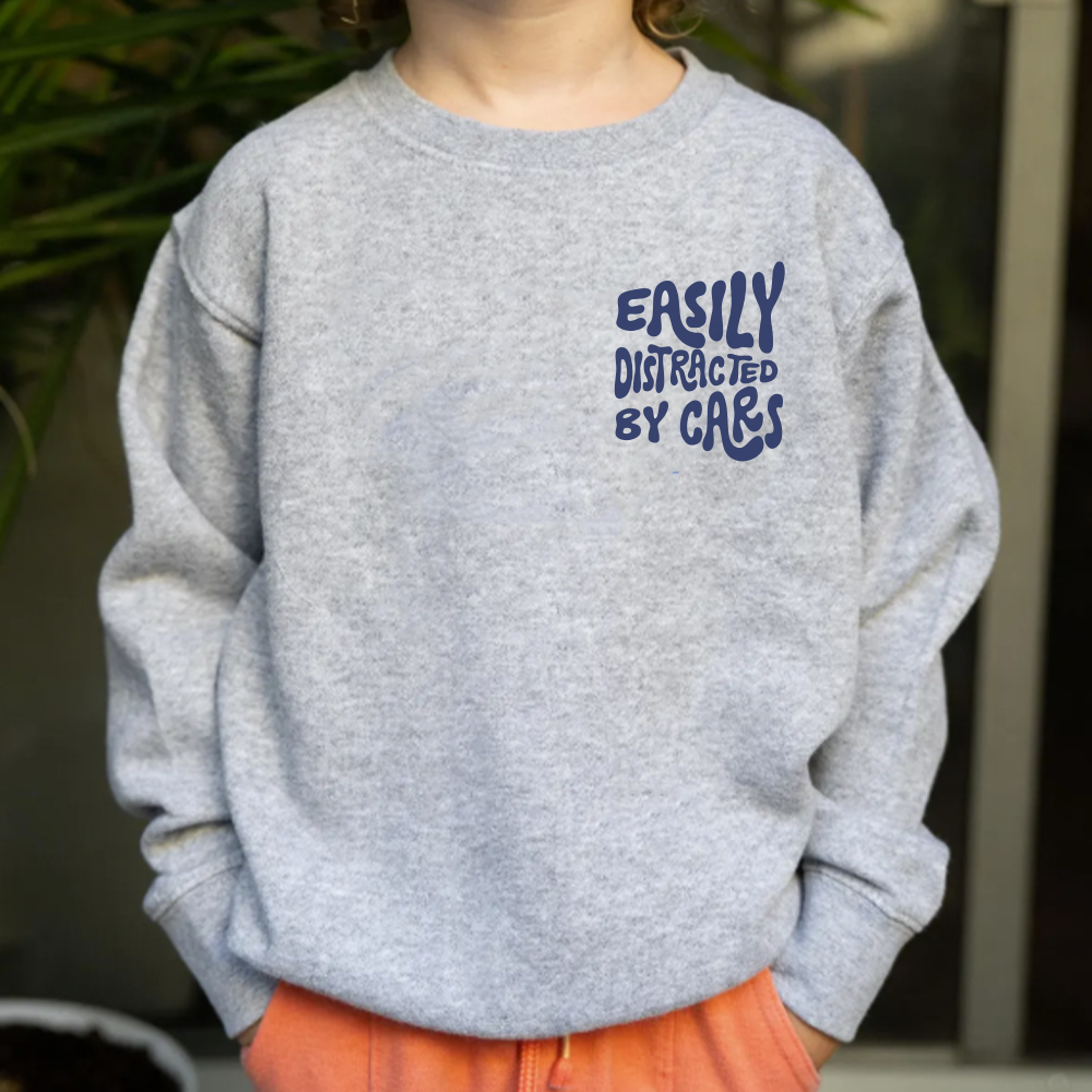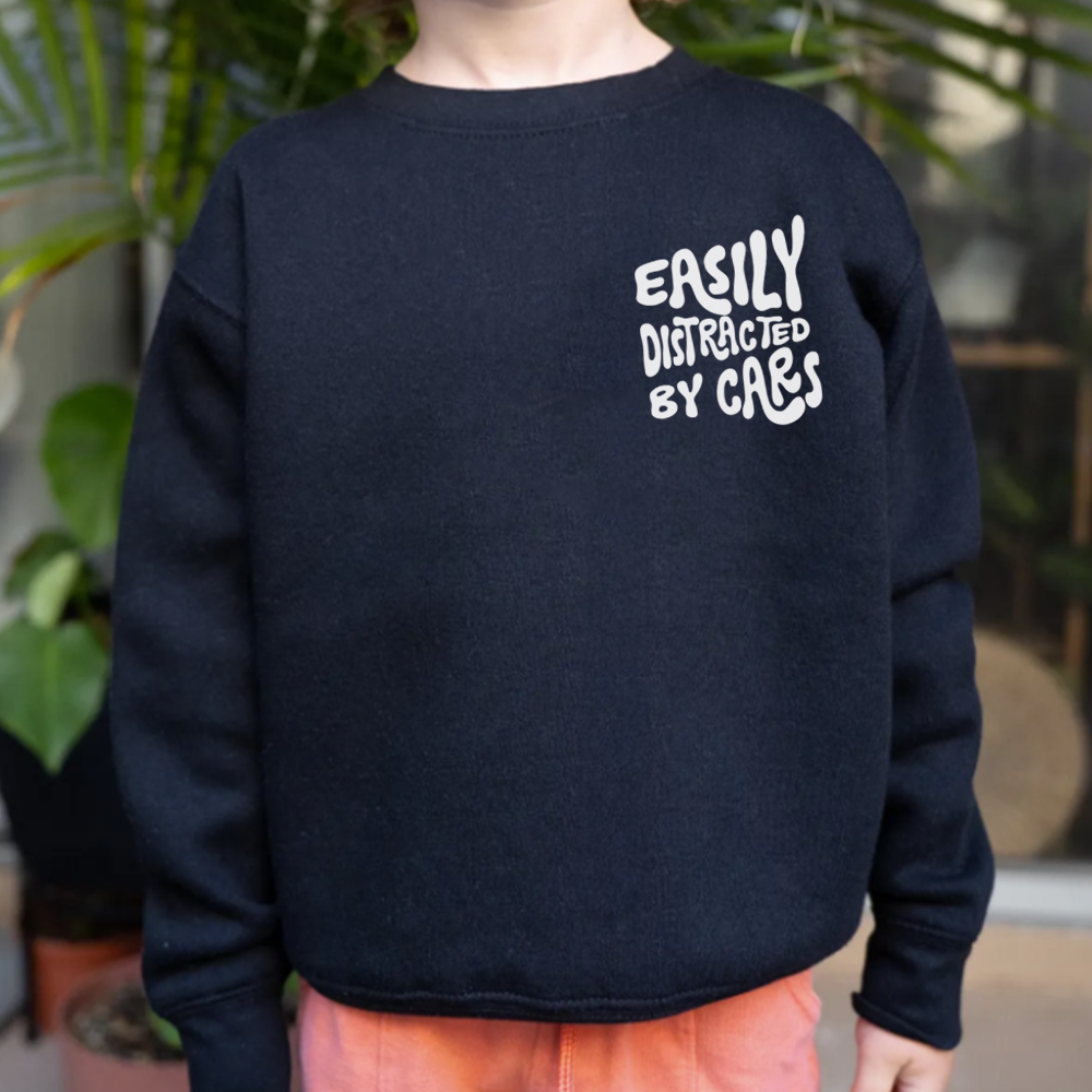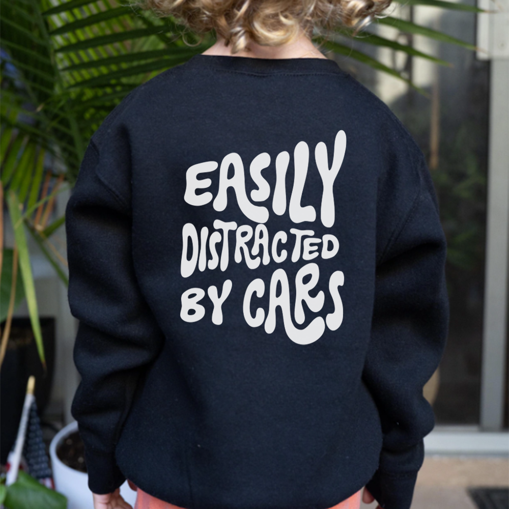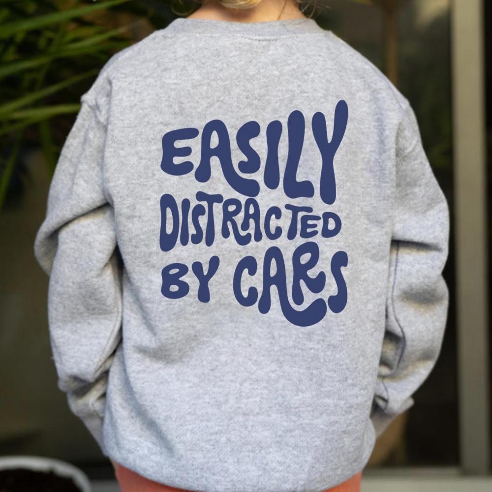 We all know a little someone who this is made for. Featuring front & back graphic 'Easily Distracted by Cars' Perfect cool & casual sweatshirt for everyday wear. The perfect gift this Valentines, as it's a must have for the car obsessed!
