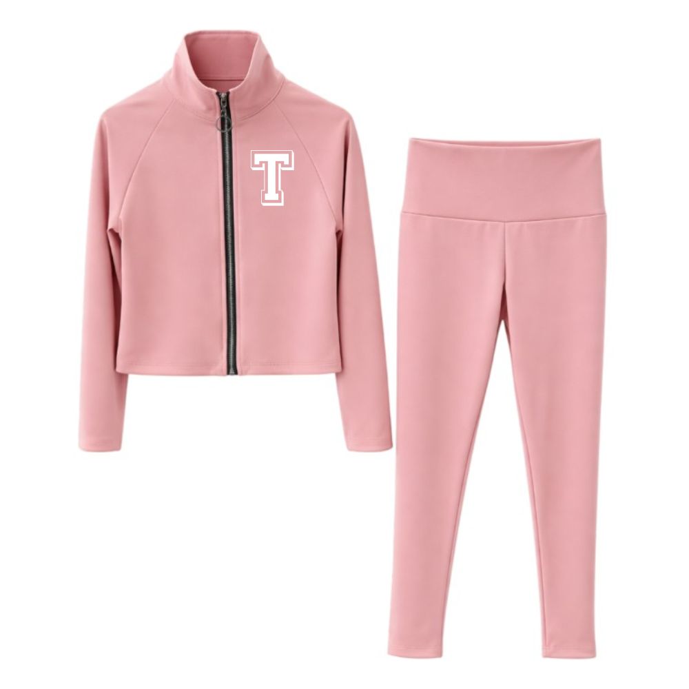 This trendy activewear set by Next Chapter features a sculpting wrap-front sports bra, a classic supportive tank, and a sleek zip-up jacket paired with high-waisted leggings. Crafted from smooth, stretchy fabric that hugs in all the right places, it’s perfect for workouts, errands, or just serving sporty-chic energy all day long. Customised with chosen initial.