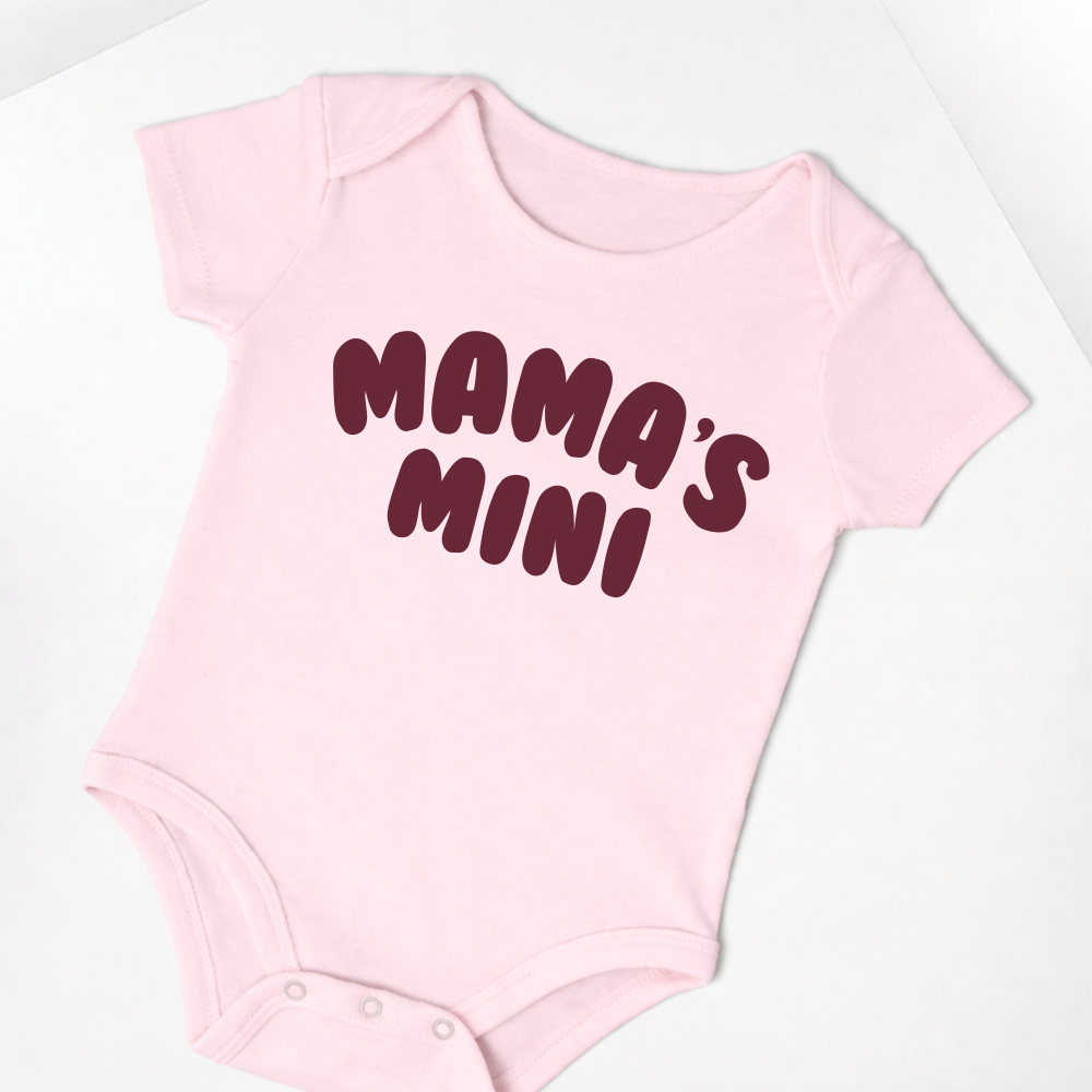 One for your Mini me! A must have in any little ones wardrobe to show off your little mini. The perfect super soft baby vest for everyday wear. Featuring slogan Mama's Mini. They are bound to be the cutest one in any room.