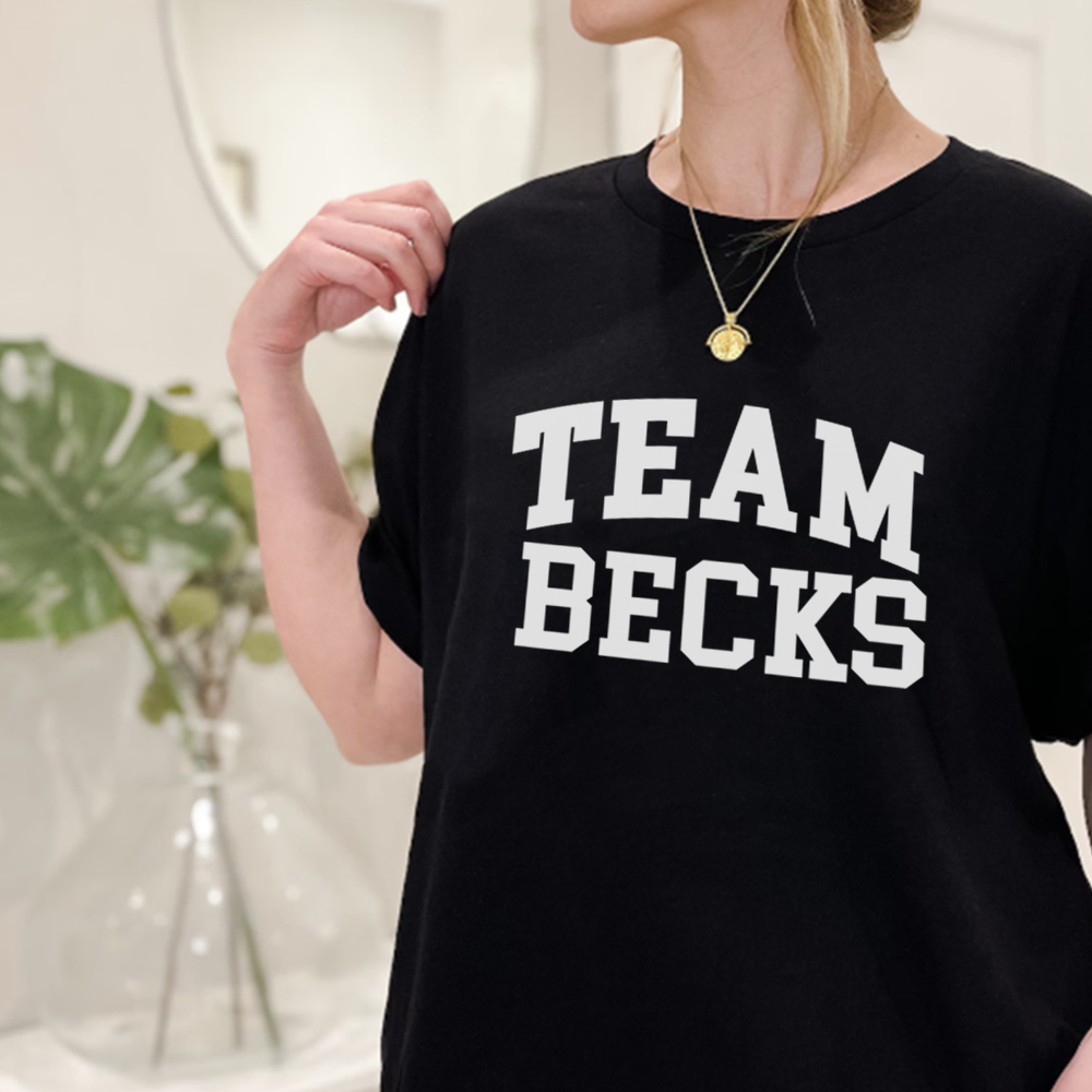 Featuring graphic slogan 'Team Becks'. This t-shirt is the perfect to get everyone talking. A classic black tee that says everything without saying too much! Just pair with jeans or jogger for a casual, yet head turning fit
