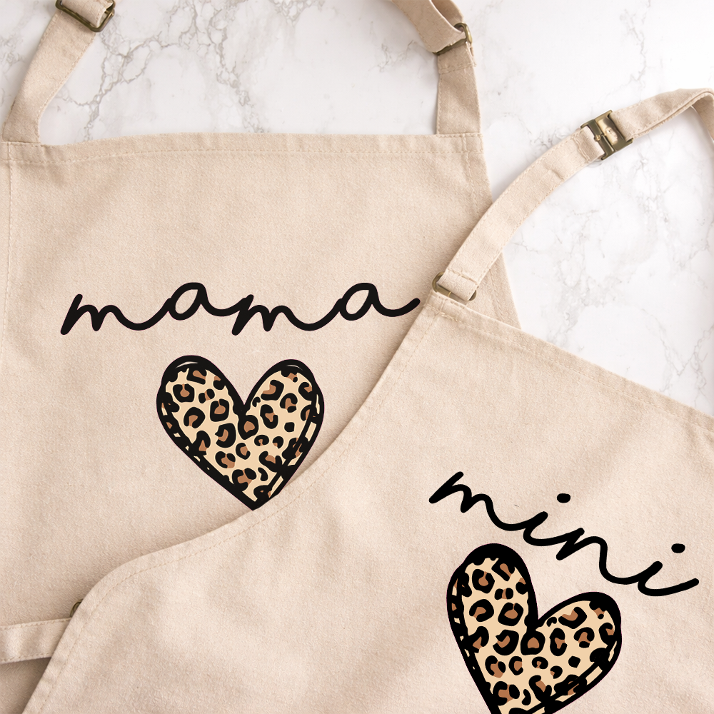 Mama & Mini Leopard Logo Heart Matching Natural Aprons