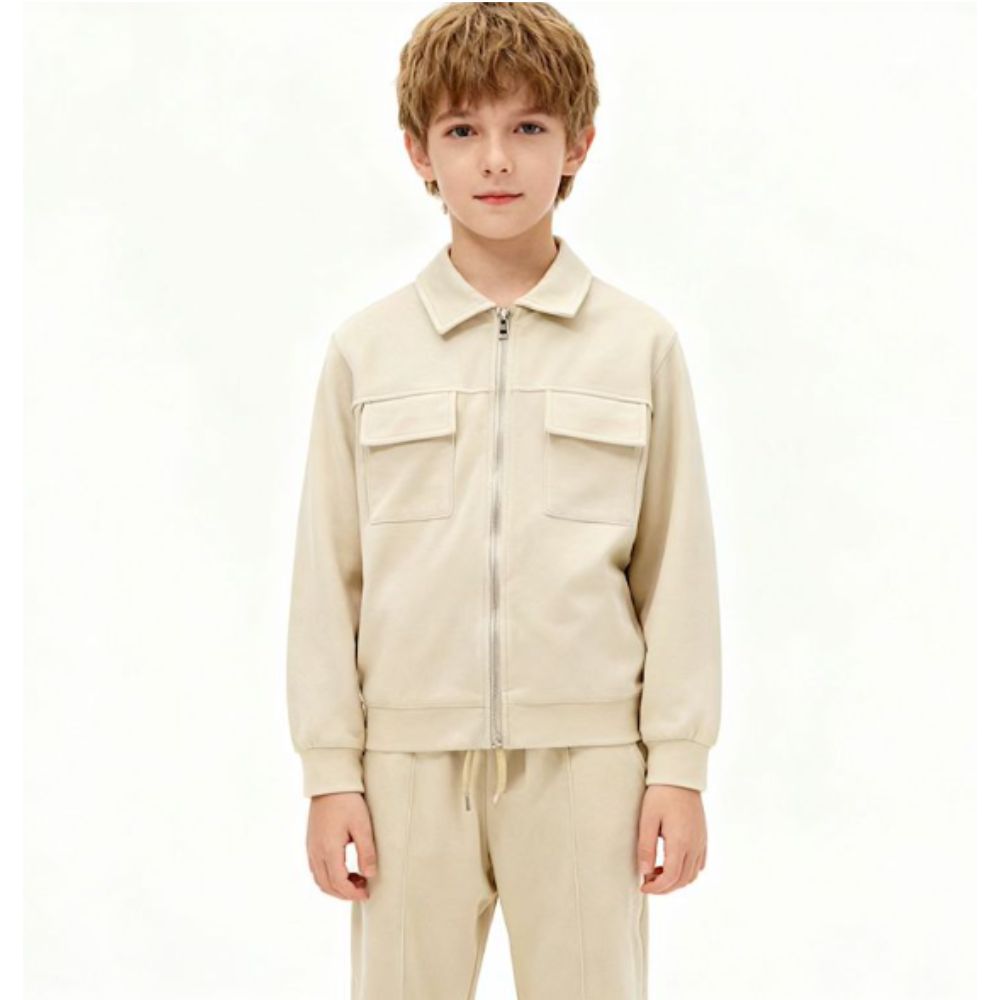 Kid Collective Zipped Jacket & Trouser Set in Beige