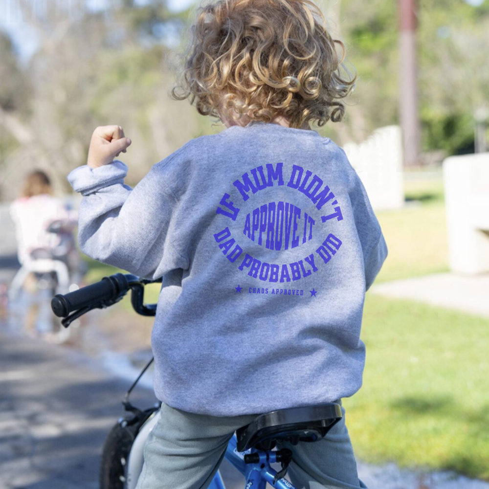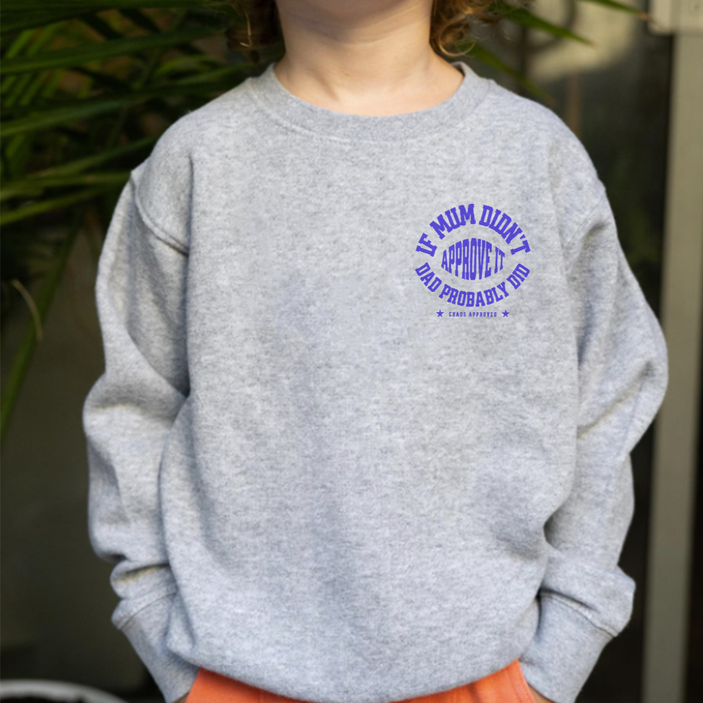 Mum vs Dad a story as old as time.... we all know that if mum didn't approve, dad probably did. This sweatshirt is the cutest sweatshirt for any little ones wardrobe ... the ultimate cheeky & relatable slogan for everyday wear. Guaranteed to get a few laughs!