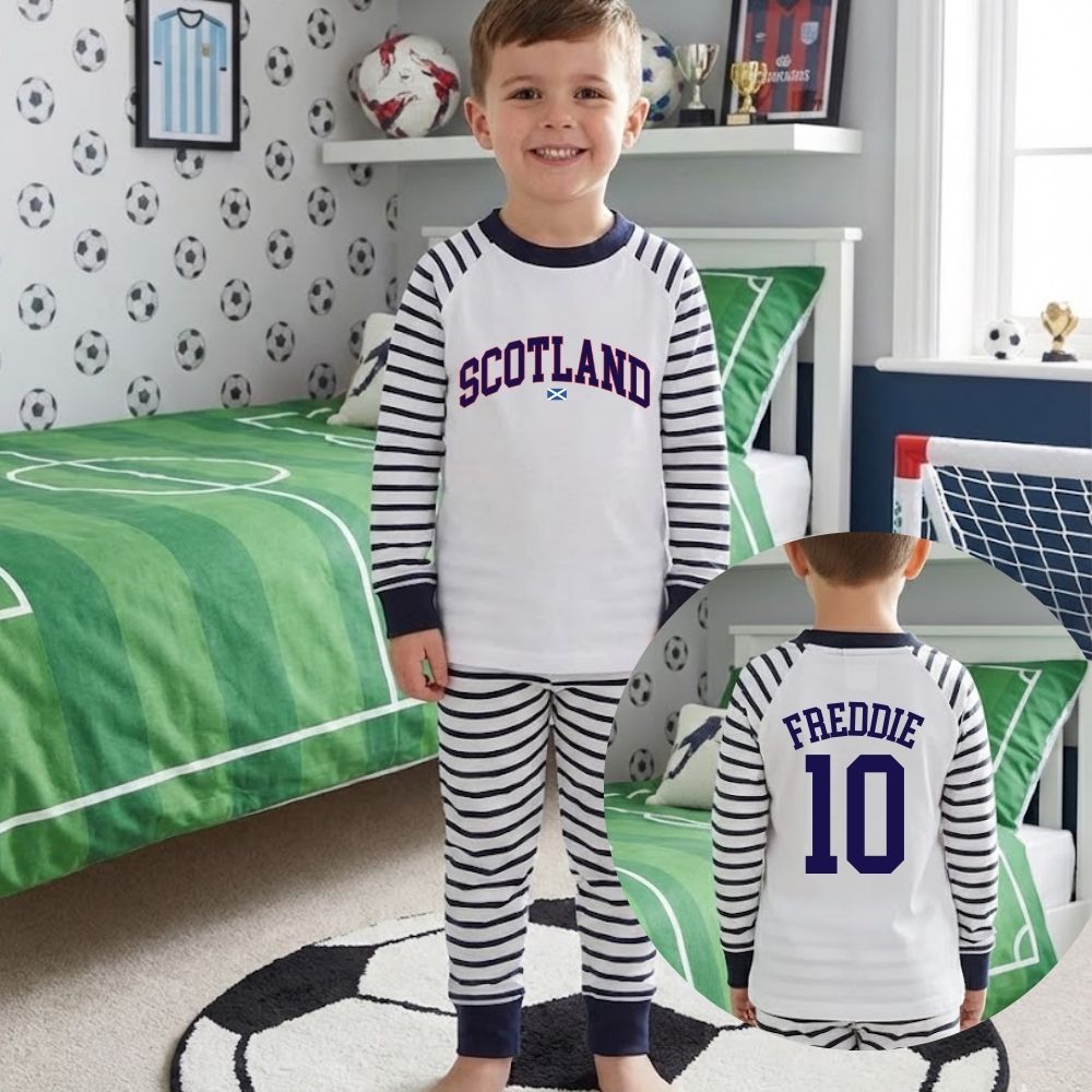 Get ready to show your Scottish pride in style with our these patriotic Scotland Pyjamas. Whether you're cheering from the stands or watching the World Cup from home, these pyjamas are perfect for matchday.