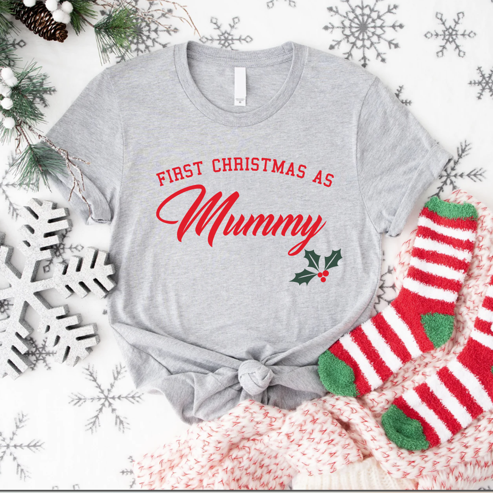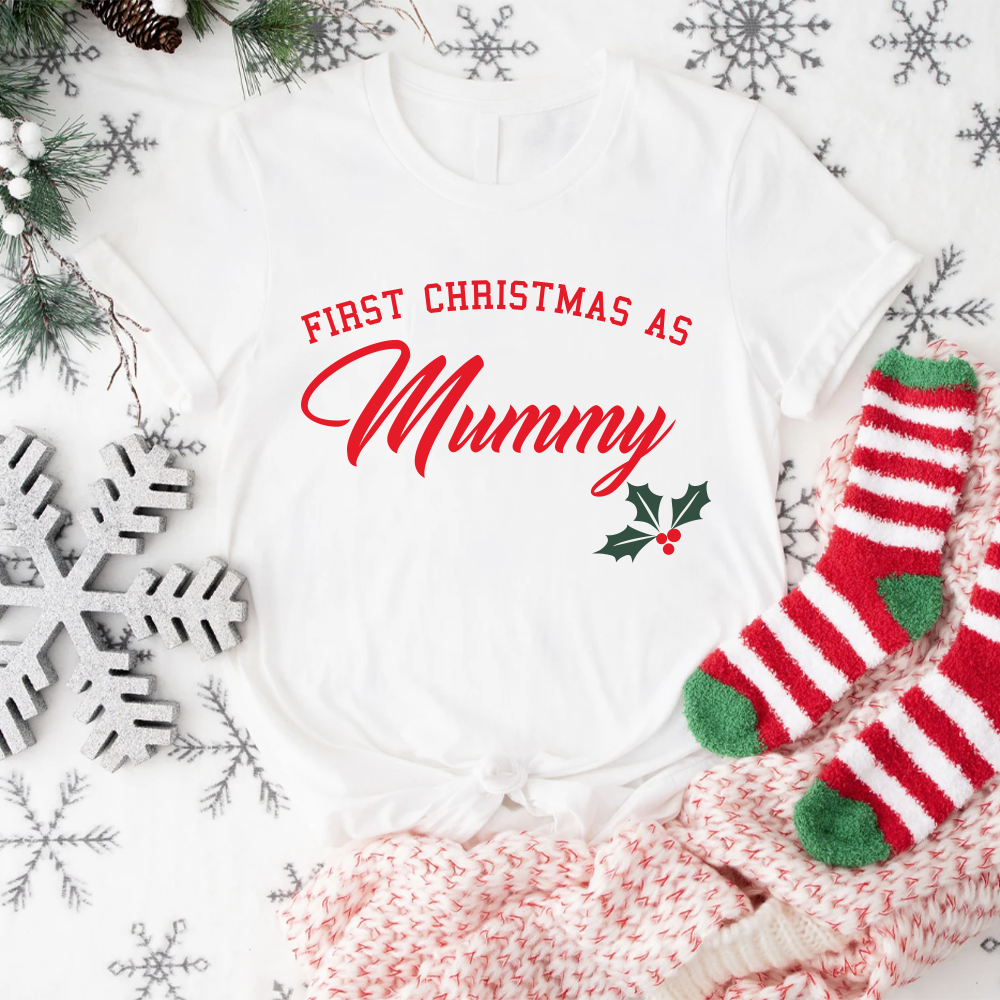 Is there a cuter t-shirt for a first-time Mama at Christmas? Featuring 'First Christmas As Mummy' slogan, this t-shirt can be teamed with jeans or pyjama's for a daytime/night time seasonal look.