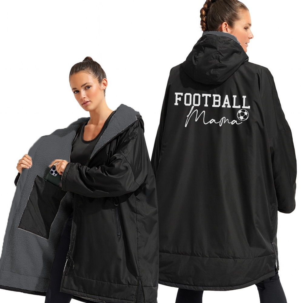 Welcome this seasons latest outerwear essential for every Mama. The All-seasons waterproof changing robe boasts a waterproof exterior with hood to keep you dry, as well as adjustable straps to the wrists and chin guard to help lock in heat on windy days. The cosy sherpa fleece interior absorbs moisture and keeps you warm, making it a great choice after water activities or rainy days on the football pitch. Designed to be oversized, the jacket is ideal for changing into warm, dry clothes, offering a double zip – so more room to move! Featuring multiple deep pockets, inside and out, it’s not just for athletes, but perfect for rainy commutes or frosty walks with the dog.