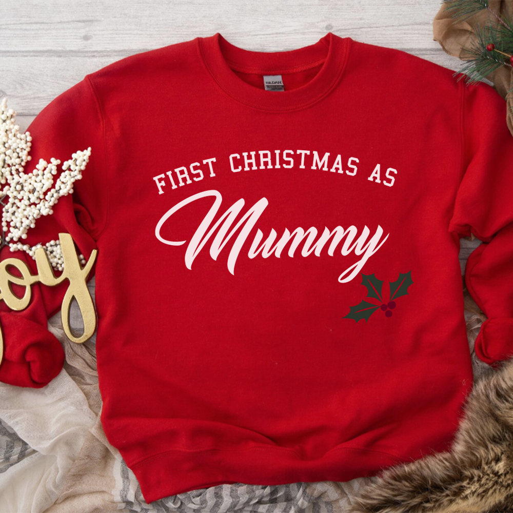 First Christmas As Mummy Classic Script Red Sweatshirt (MRK X)