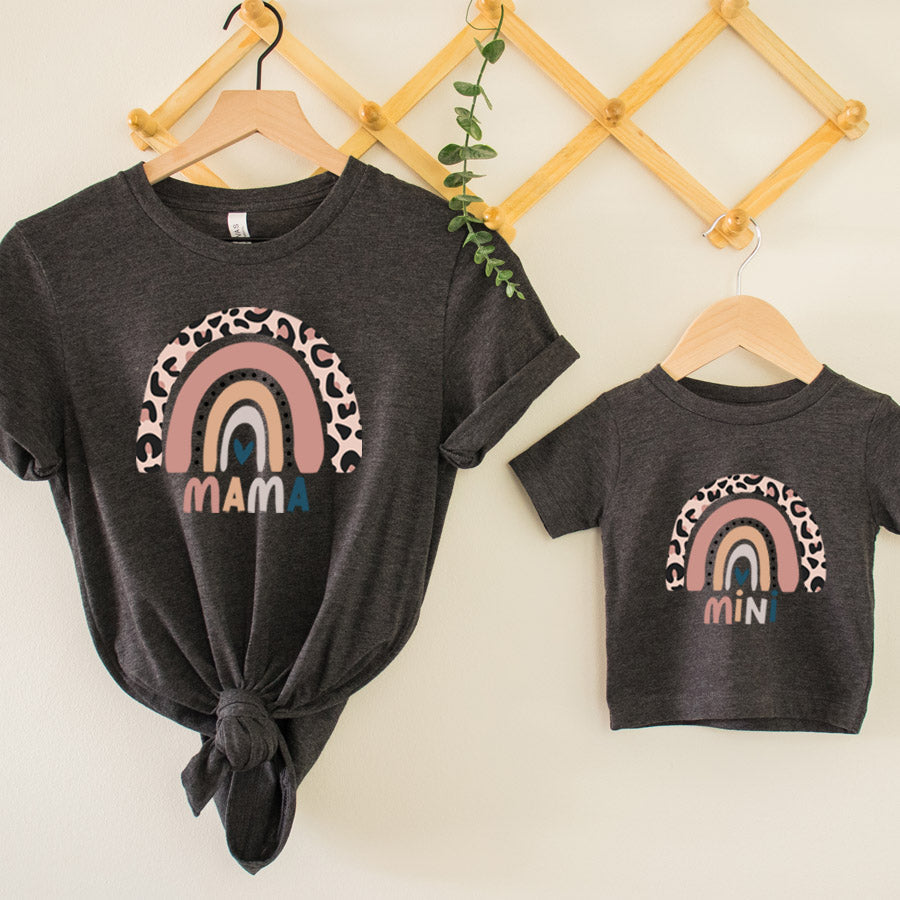CLR Leopard Rainbow Mama & Mini Charcoal Heather T-Shirts