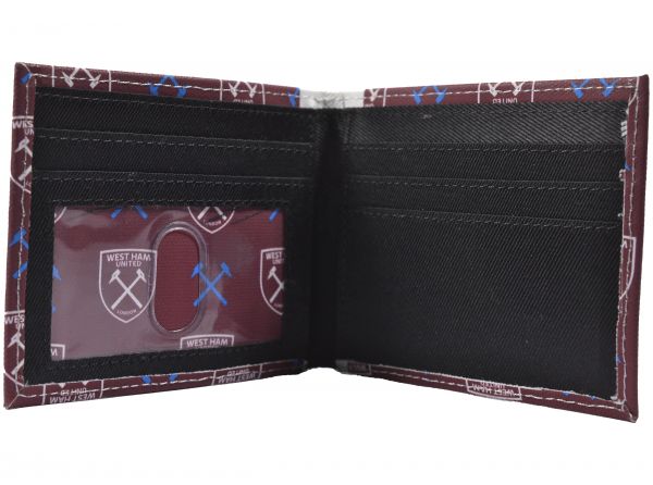 - Vibrant brushed canvas bifold wallet featuring a west ham multi icon design