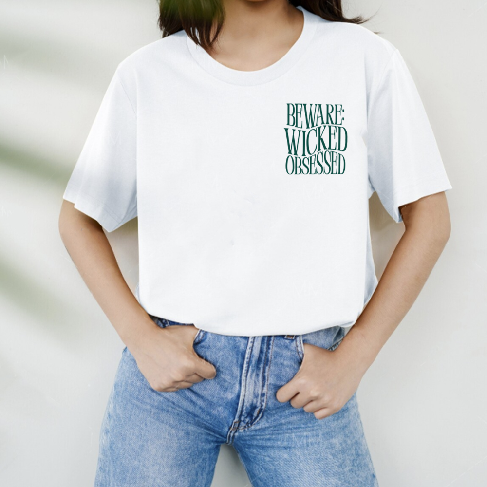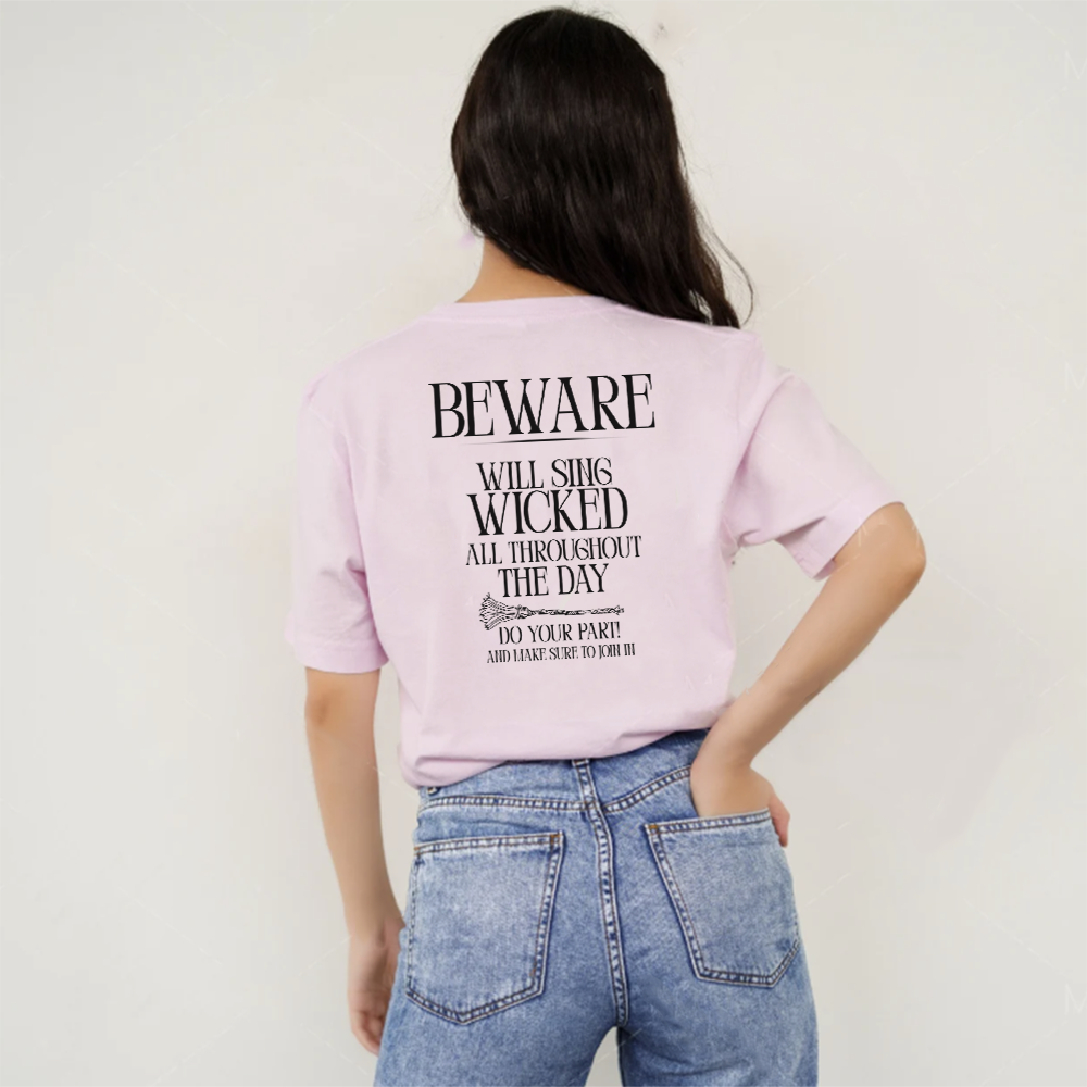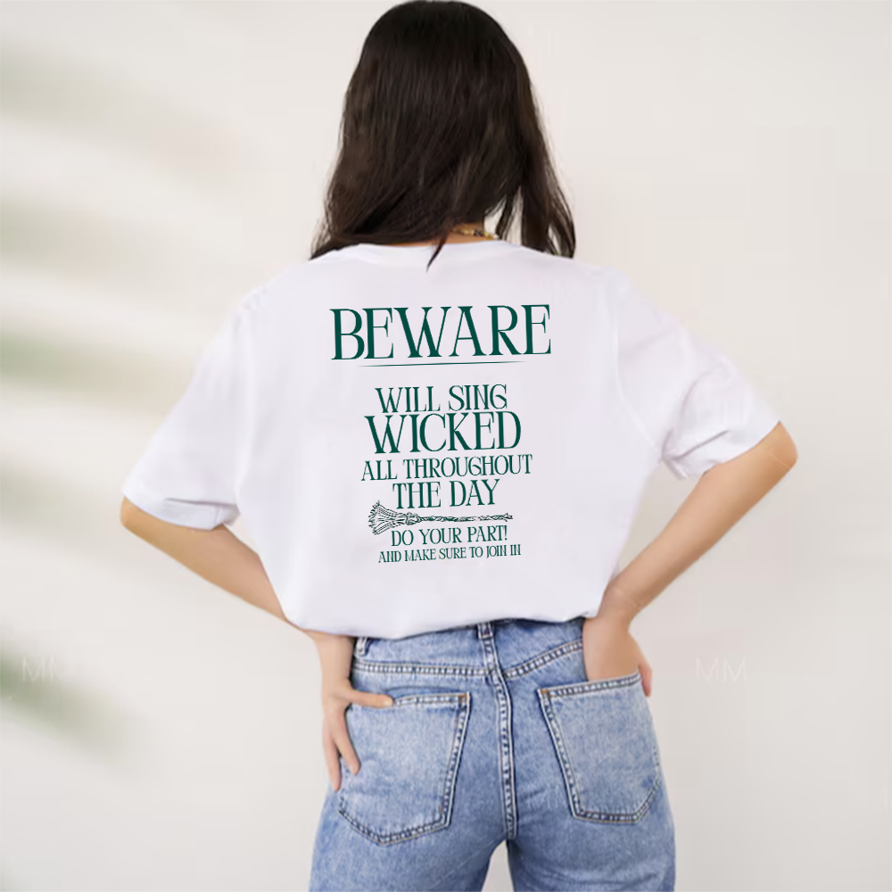 For the Wicked obsessed, a warning is definitely need for the notes you may or may not want to try. The perfect t-shirt for watching wicked for the millionth time. just pair with jeans or joggers for the ultimate casual look.