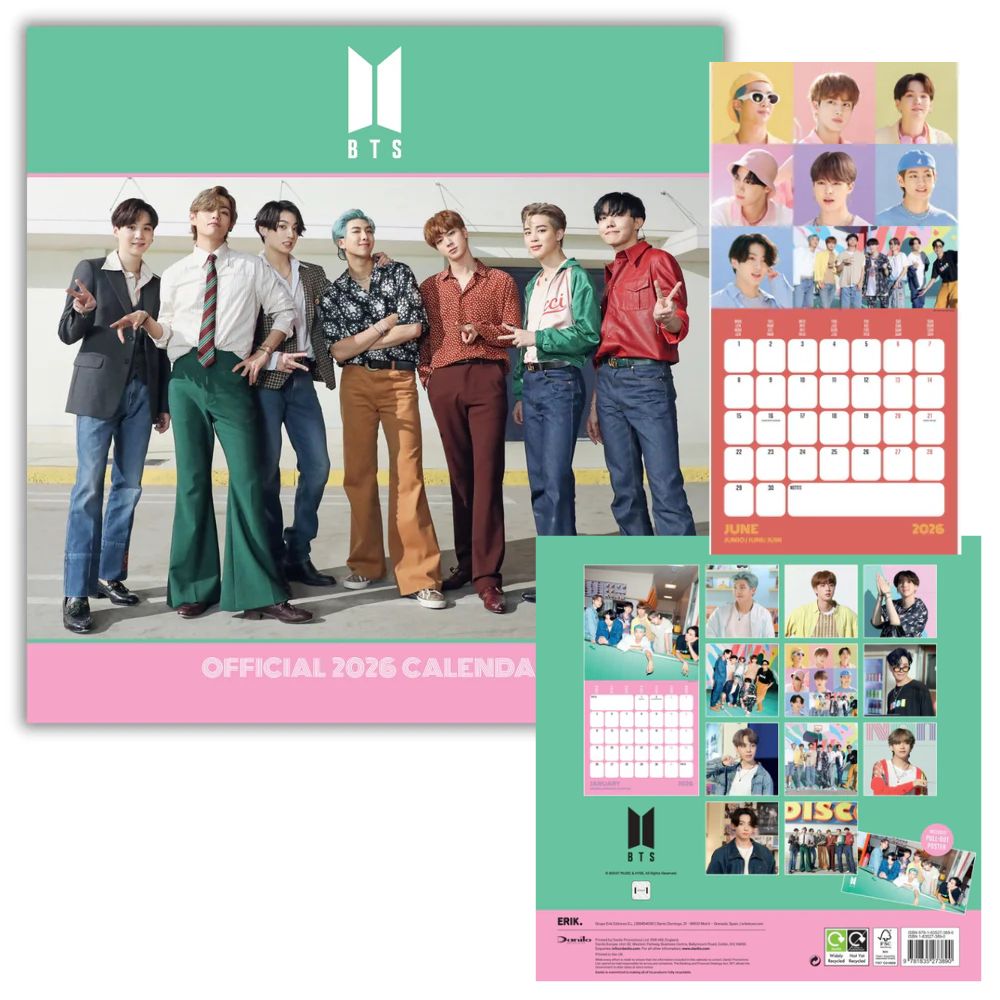 Celebrate every month with BTS in the official 2026 square calendar, featuring stunning photos of all seven members against vibrant green and pink backgrounds. Each month’s name appears in a different language—English, French, German, and Spanish—with ample space for notes and plans. A colourful, global must-have for ARMYs everywhere.