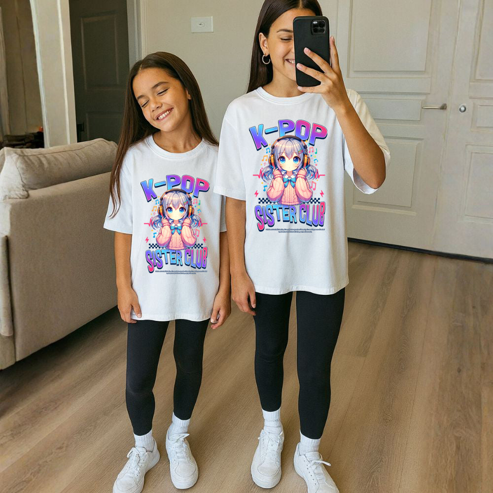 One strictly for the K-Pop obsessed- These cheeky Sister Club White T-Shirts are your ticket to coordinated coolness. Whether you're heading to a concert, catching up with your ride-or-dies, or just living your best K-pop life, matching tees have never been this fun. Comfy, stylish, and packed with personality, they're the perfect way to show the world that you and your besties are in this together. Twin energy, times two!