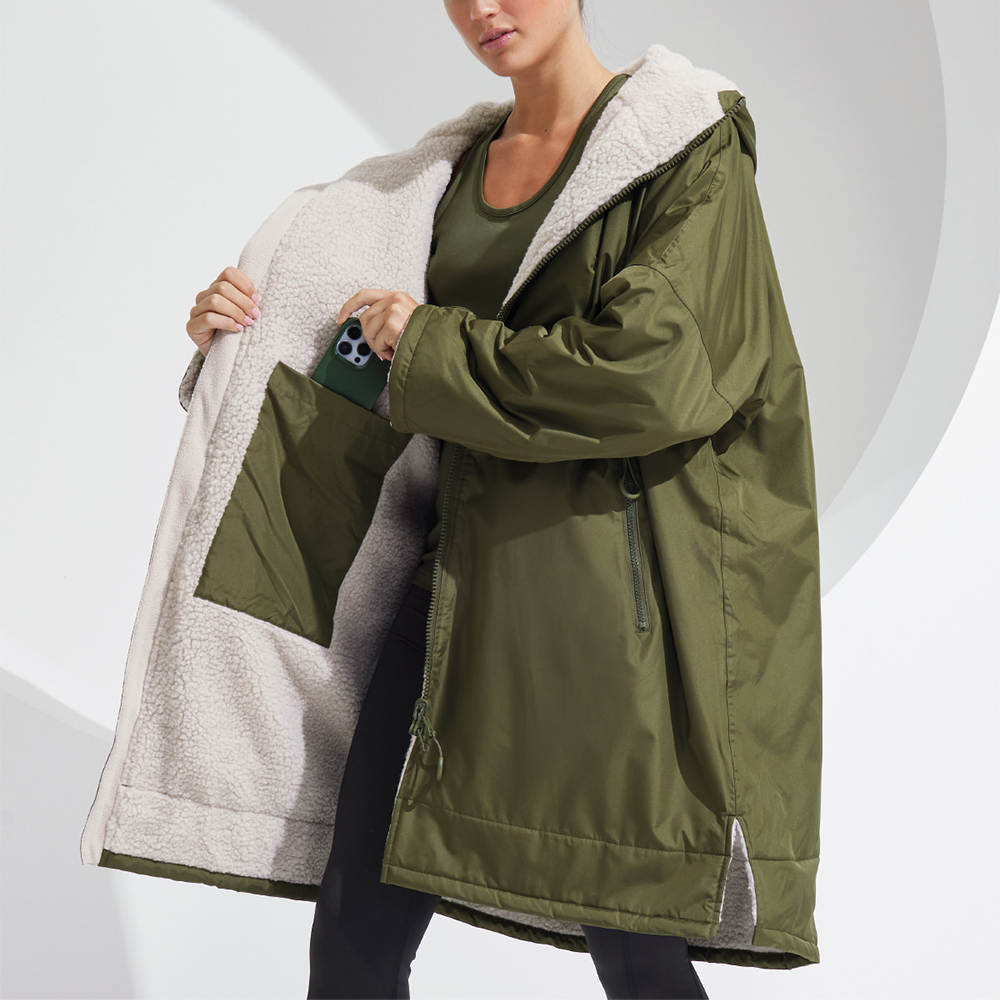 Designed to be oversized, the jacket is ideal for changing into warm, dry clothes, offering a double zip – so more room to move! Featuring multiple deep pockets, inside and out, it’s not just for athletes, but perfect for rainy commutes or frosty walks with the dog.
