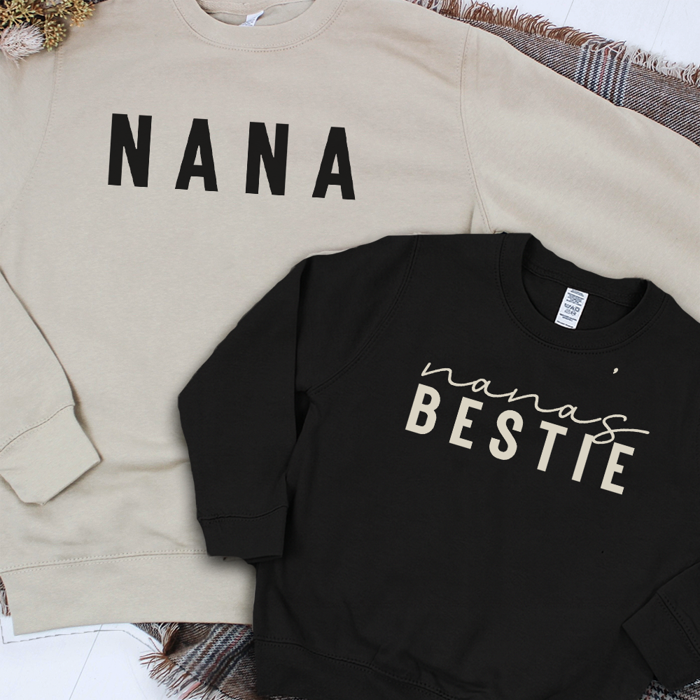 Every Nana needs their Little Bestie. The perfect twinning top for all year round. A great extra layer for those chiller months all while looking cute with their nana. The ultimate Nana & Nana's bestie outfit for staying over at Nana's house.