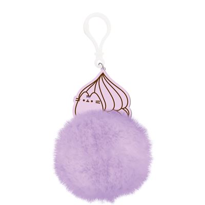 Soft and fluffy lavender pom pom with plush Pusheen charm