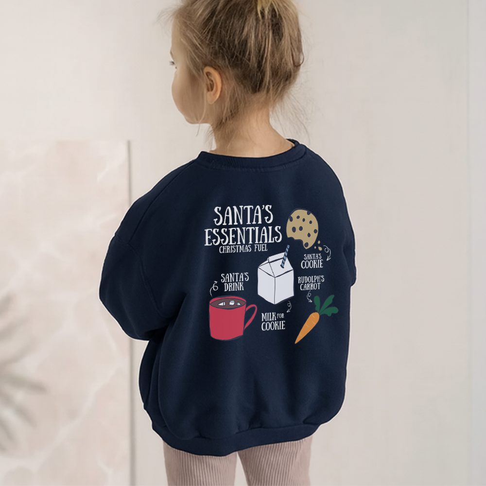 Making sure that we tick all of Santa's essentials this festive season. A cute addition to their Christmas wardrobe. If it's their first or their fourth Christmas you can never have too many Christmas sweatshirt. Featuring front & back graphics for 'Santa's Essentials'. The perfect sweatshirt for getting them in the festive spirit.