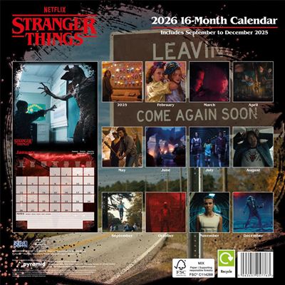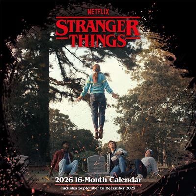 This 16-month calendar features unforgettable moments and characters from the hit Netflix series, with striking visuals that capture the suspense, heart, and nostalgia of Stranger Things.